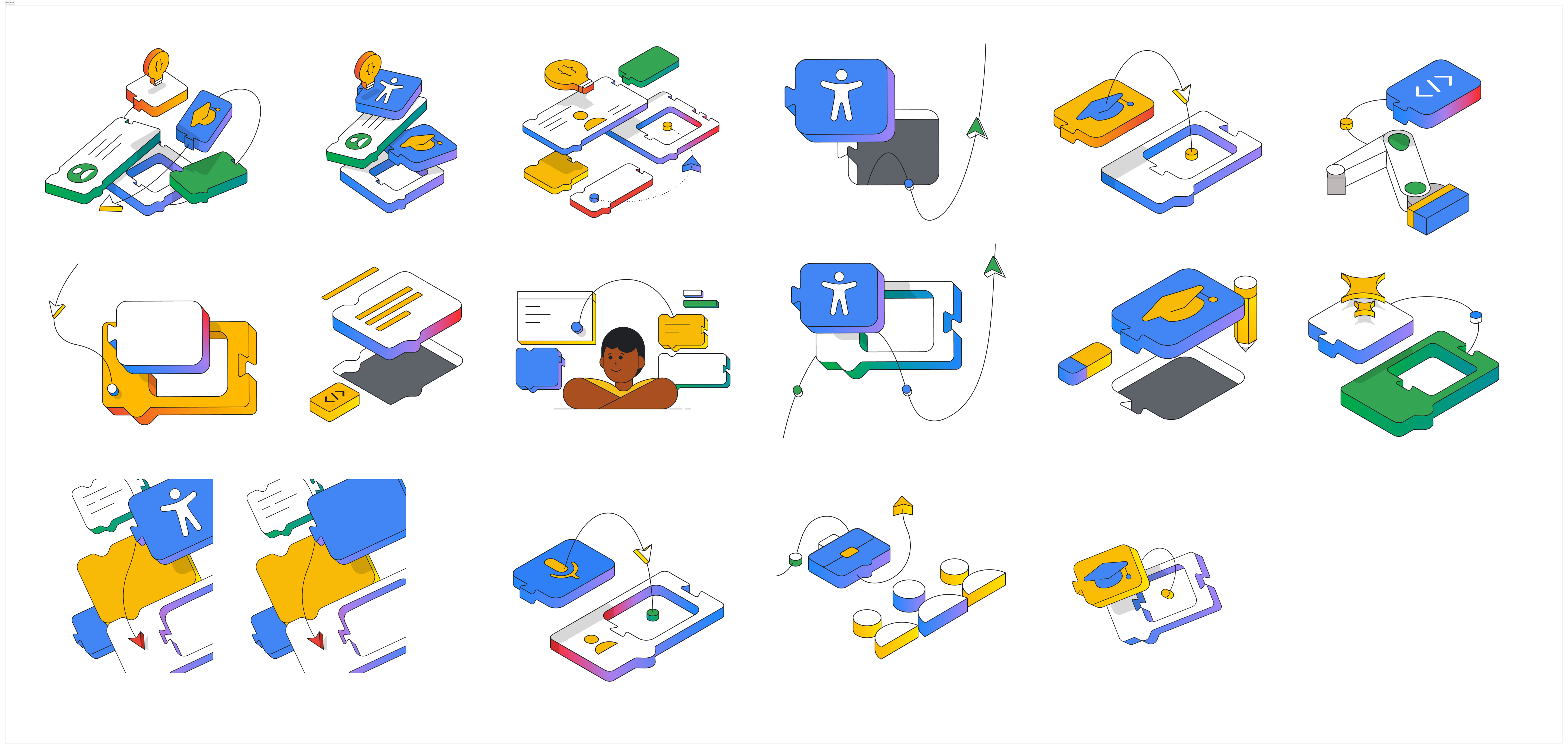 With roughly seven days of production time and a two-week full delivery window, the turnaround was tight. The work needed to honour Blockly's well-established 2D illustration style and sit comfortably within the wider Google aesthetic - all while delivering something genuinely memorable. The challenge was finding an approach that could meet the creative ambition within the time available.